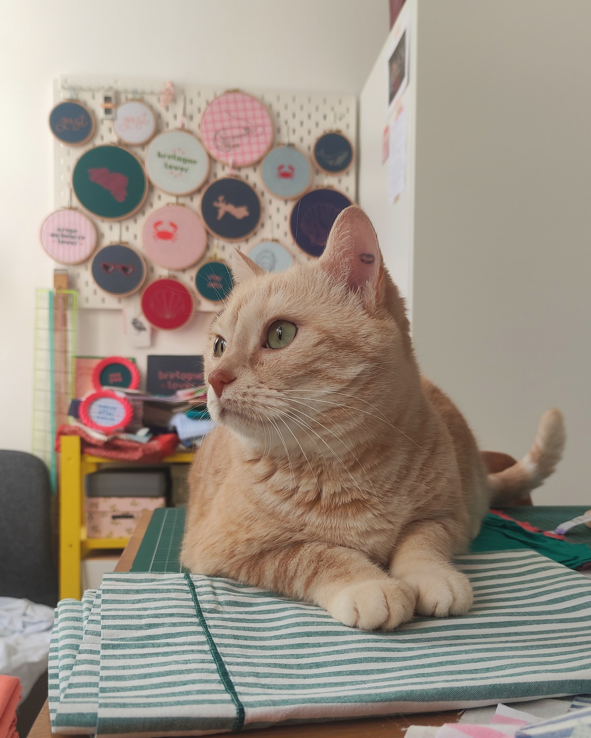 Ci-joint, Beluga, mon adorable petit chat dans son endroit préféré au monde : mon atelier